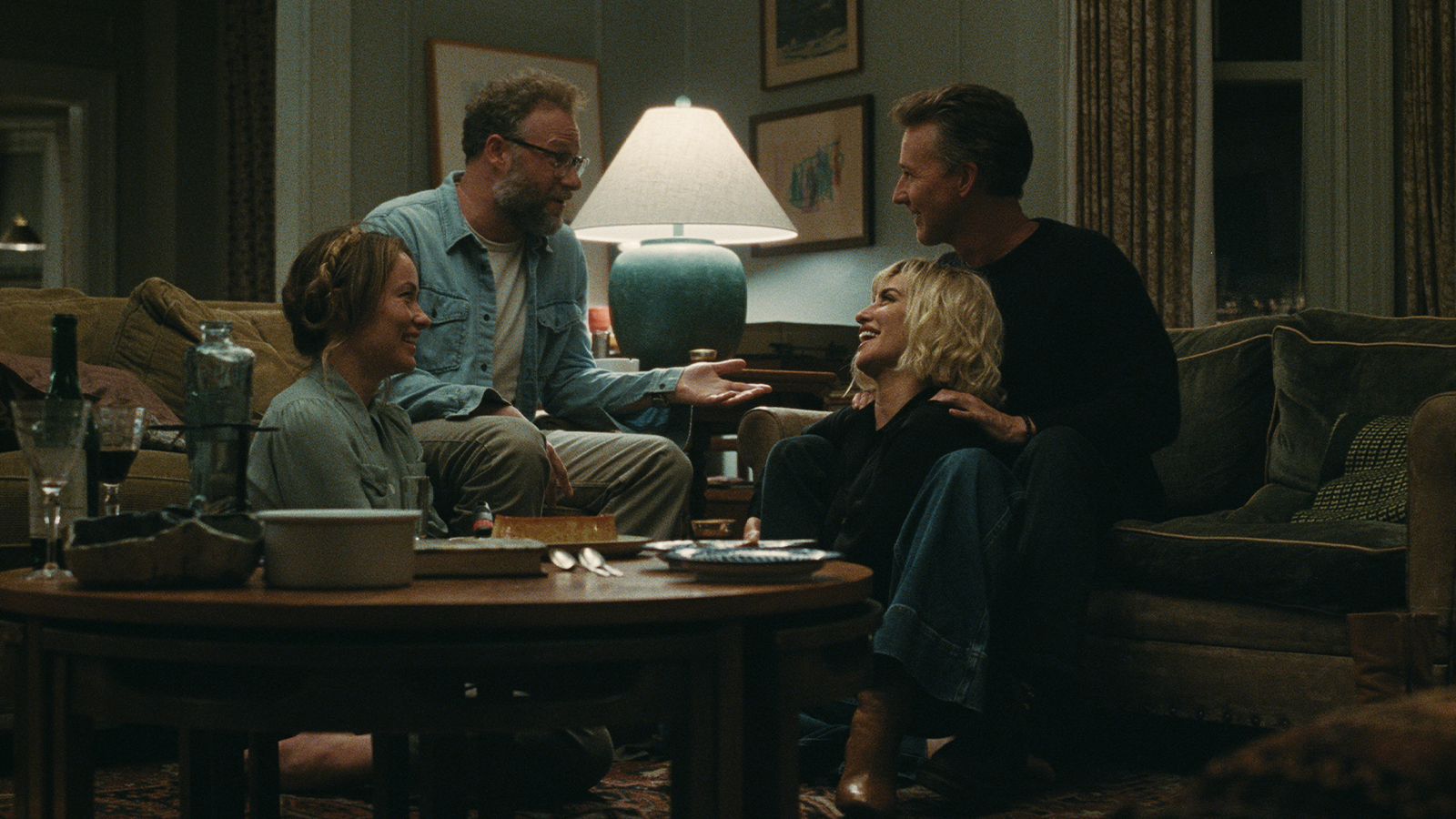Director Olivia Wilde's kinetic chamber dramedy of a marriage on the brink is raw and revealing, but also compassionate, deeply human, and incredibly funny. From a screenplay by Will McCormack and Rashida Jones, two couples (Wilde and Seth Rogen; Penelope Cruz and Edward Norton) drop into the crucible of a seemingly innocuous dinner with the neighbors, where awkward small talk unearths insecurities, codependencies, failed aspirations, and deep sexual FOMO. The closeness of the single apartment set never feels constrained, and Wilde's process—workshopping material with the cast, shooting chronologically, and inviting them to explore as they worked—gives The Invite a remarkable authenticity.
